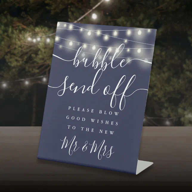 Bubble Send Off String Lights Navy Blue Pedestal Sign | Zazzle
