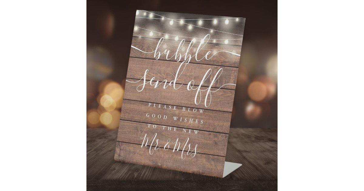Bubble Send Off String Lights Rustic Wood Pedestal Sign | Zazzle