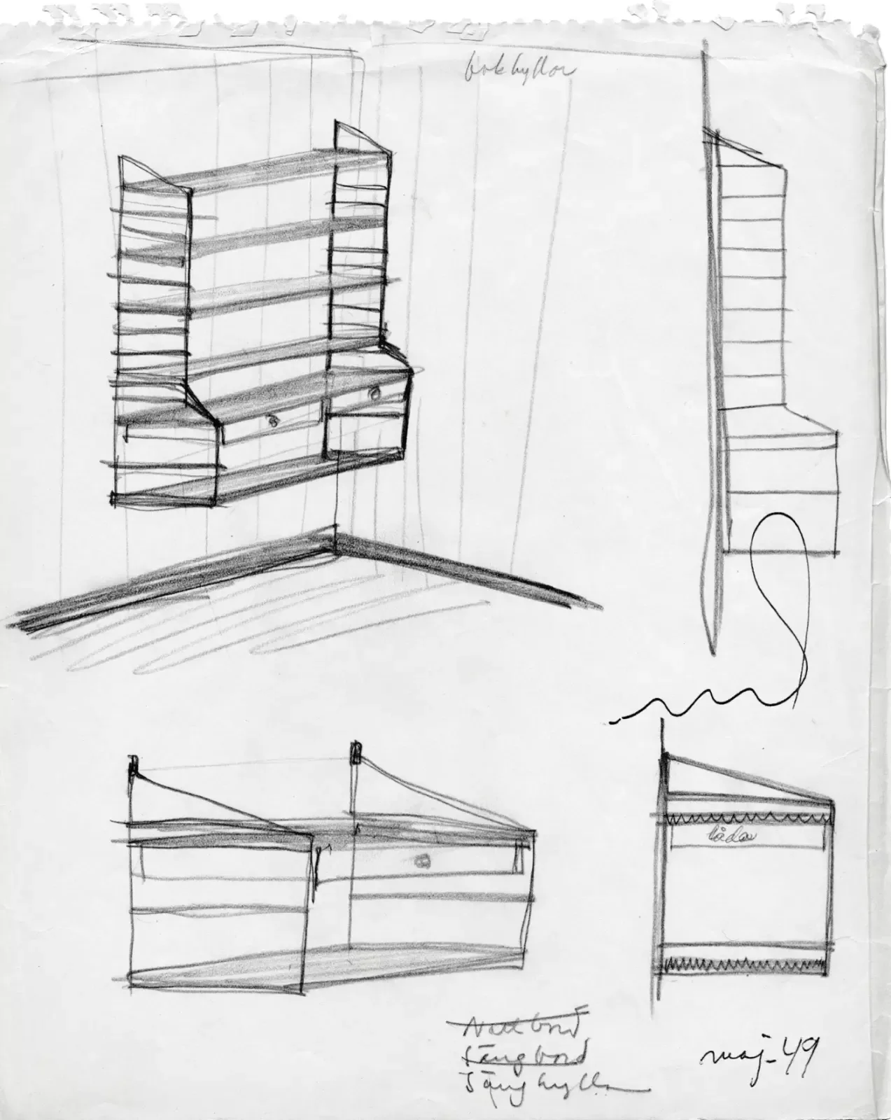 Wall-mounted Original Swedish String Shelf System, Drawers, Bookcase ...