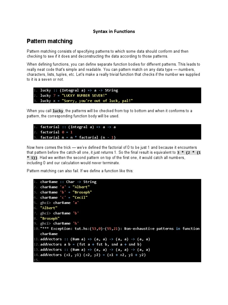 Pattern Matching: Syntax in Functions | PDF | Applied Mathematics ...