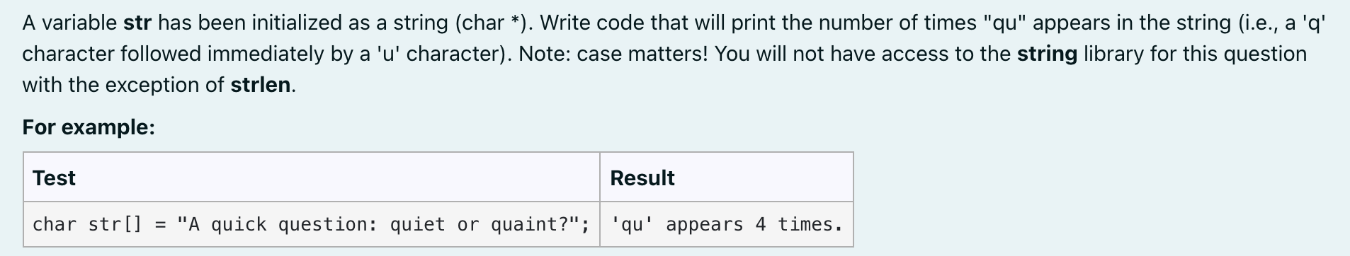 Solved A variable str has been initialized as a string (char | Chegg.com