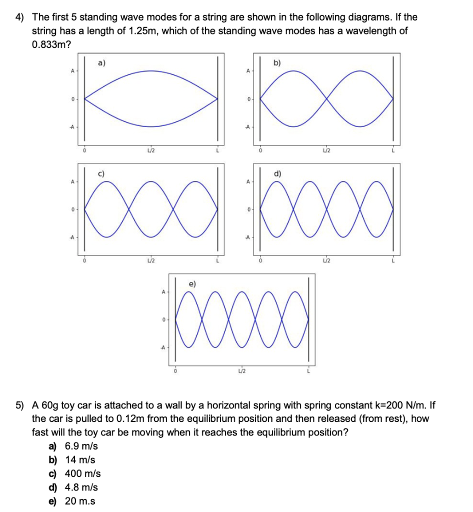 Solved 4) The first 5 standing wave modes for a string are | Chegg.com