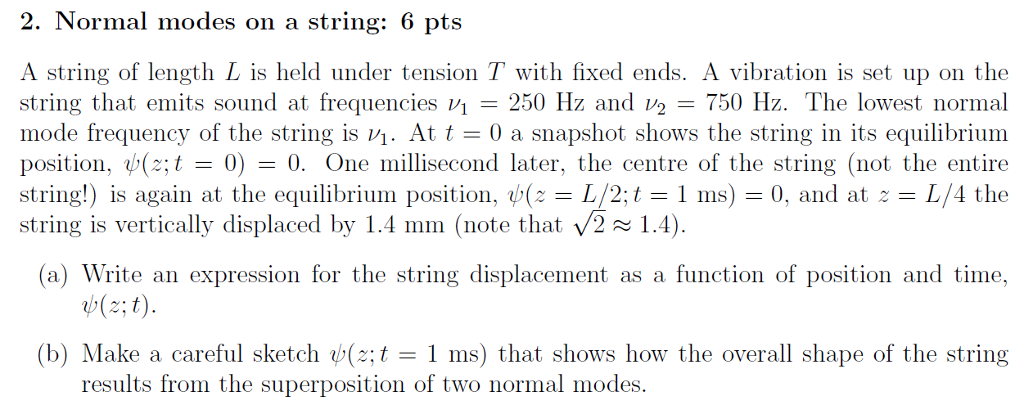 Solved 2. Normal modes on a string: 6 pts A string of length | Chegg.com