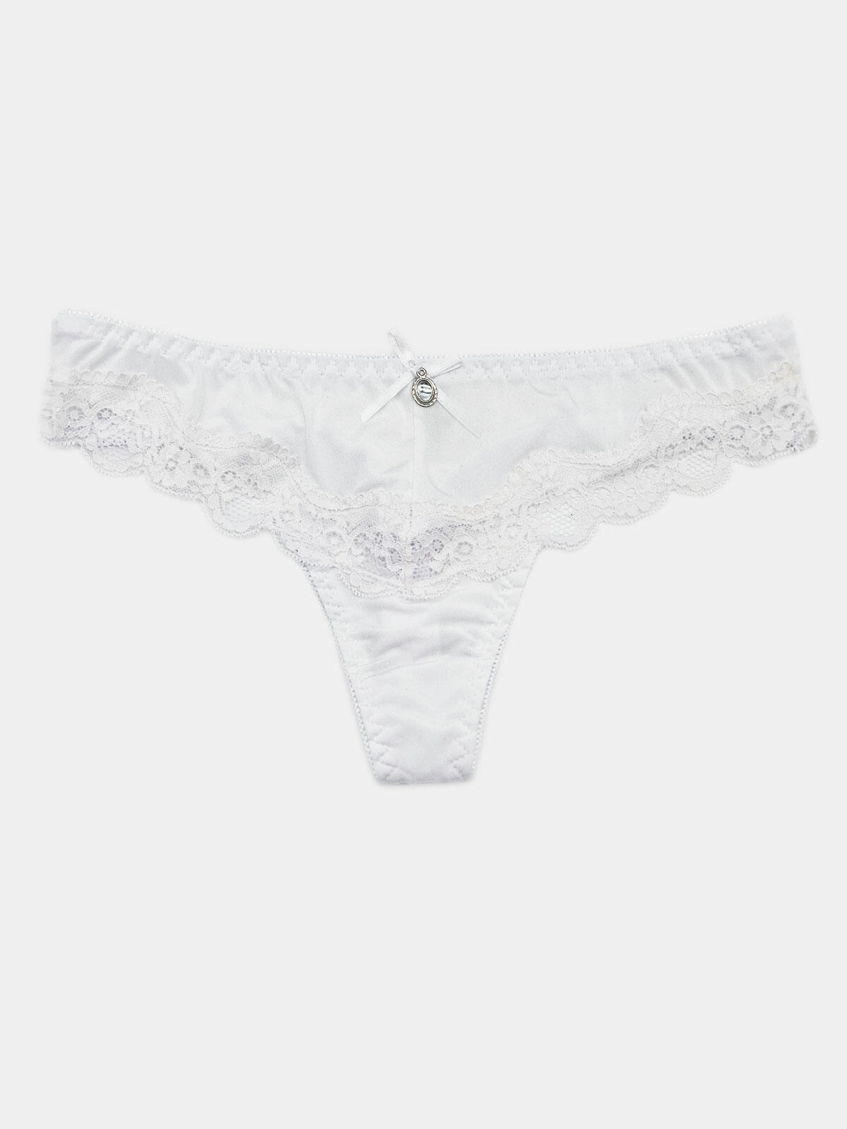 Royalfashion Damskie białe stringi z koronką i ozdobnymi paseczkami ...