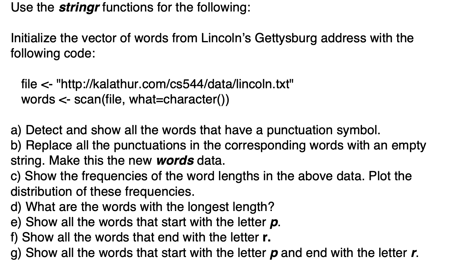 Use the stringr functions for the following: | Chegg.com