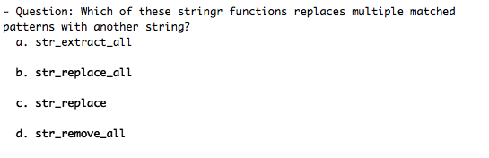 Solved - Question: Which of these stringr functions replaces | Chegg.com