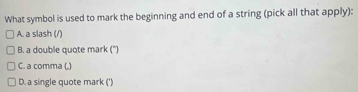 Solved: What symbol is used to mark the beginning and end of a string ...