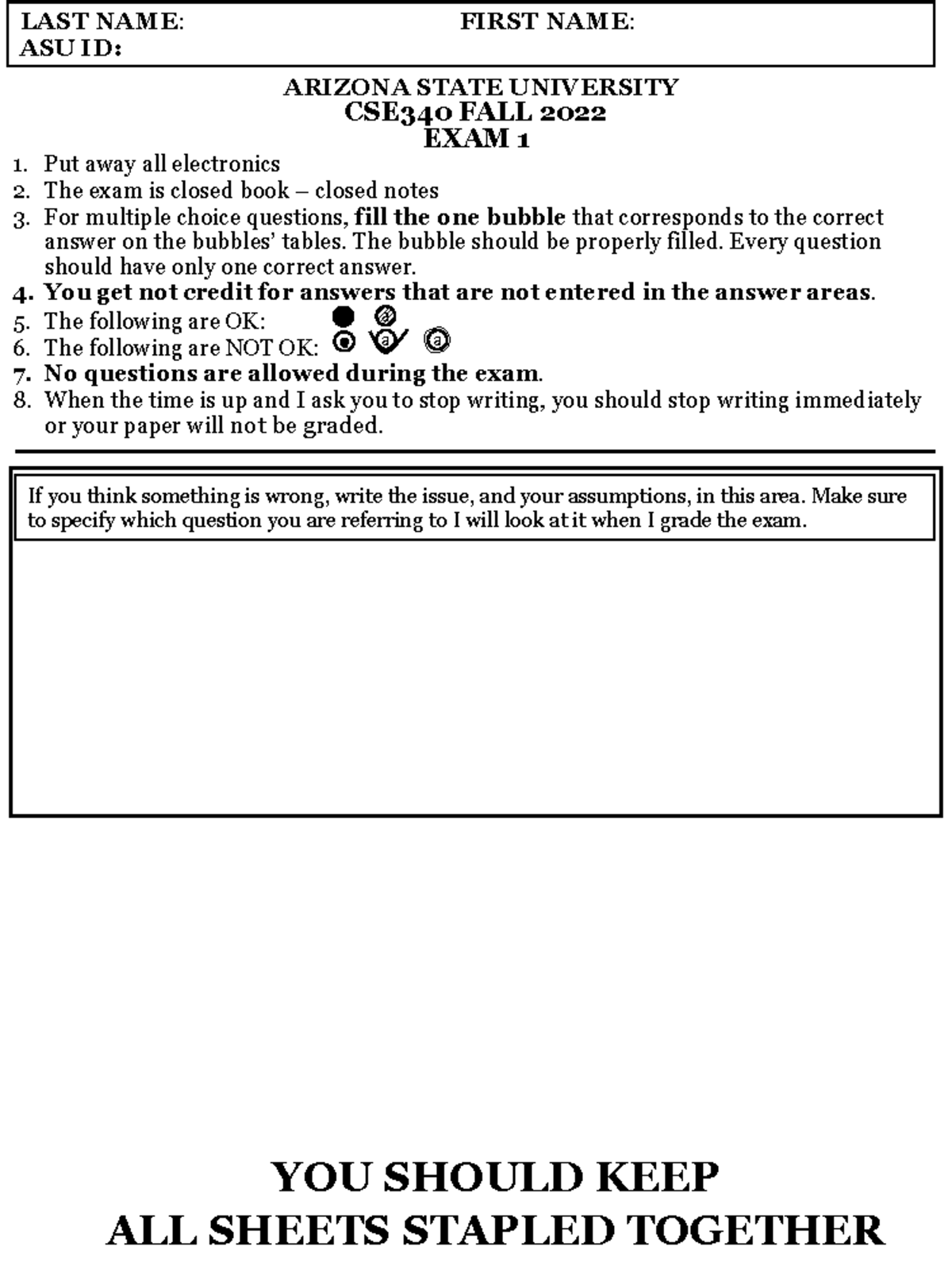 CSE340 Fall 2022 Exam 1 Instructions and Questions - Studocu