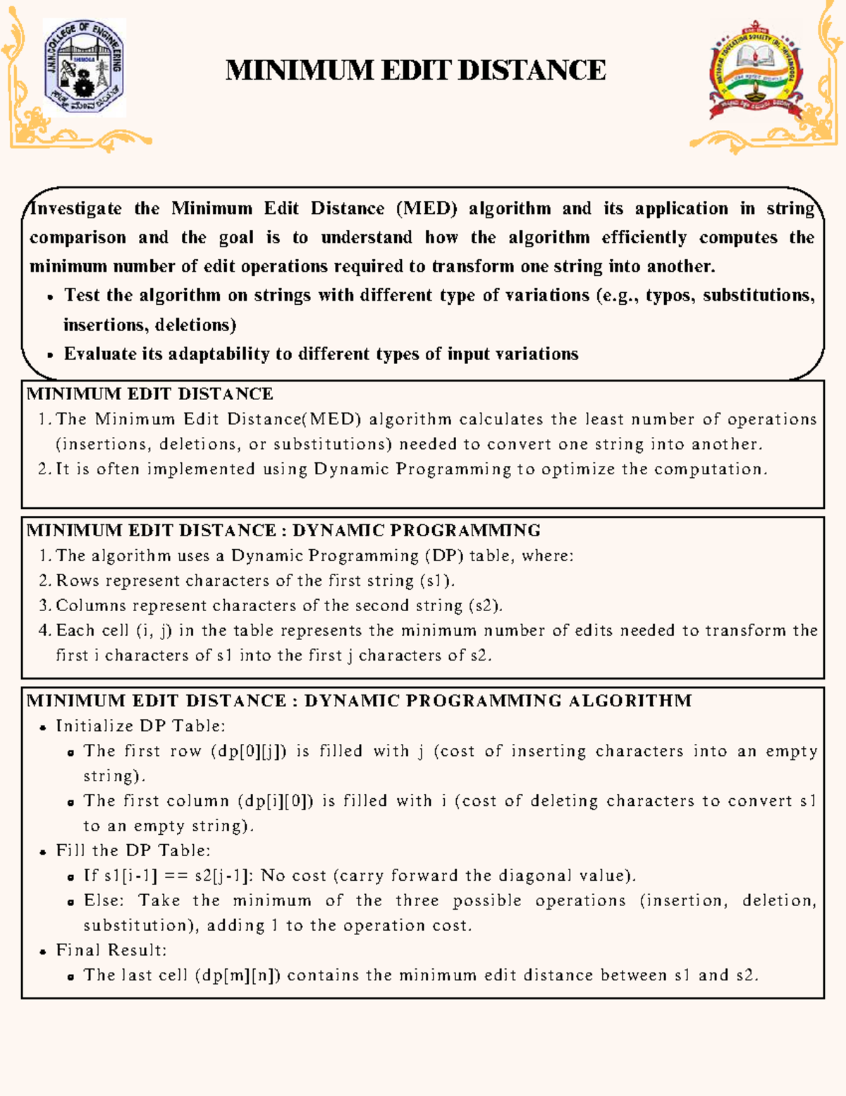 Minimum Edit Distance (MED) Algorithm: A Dynamic Programming Approach ...