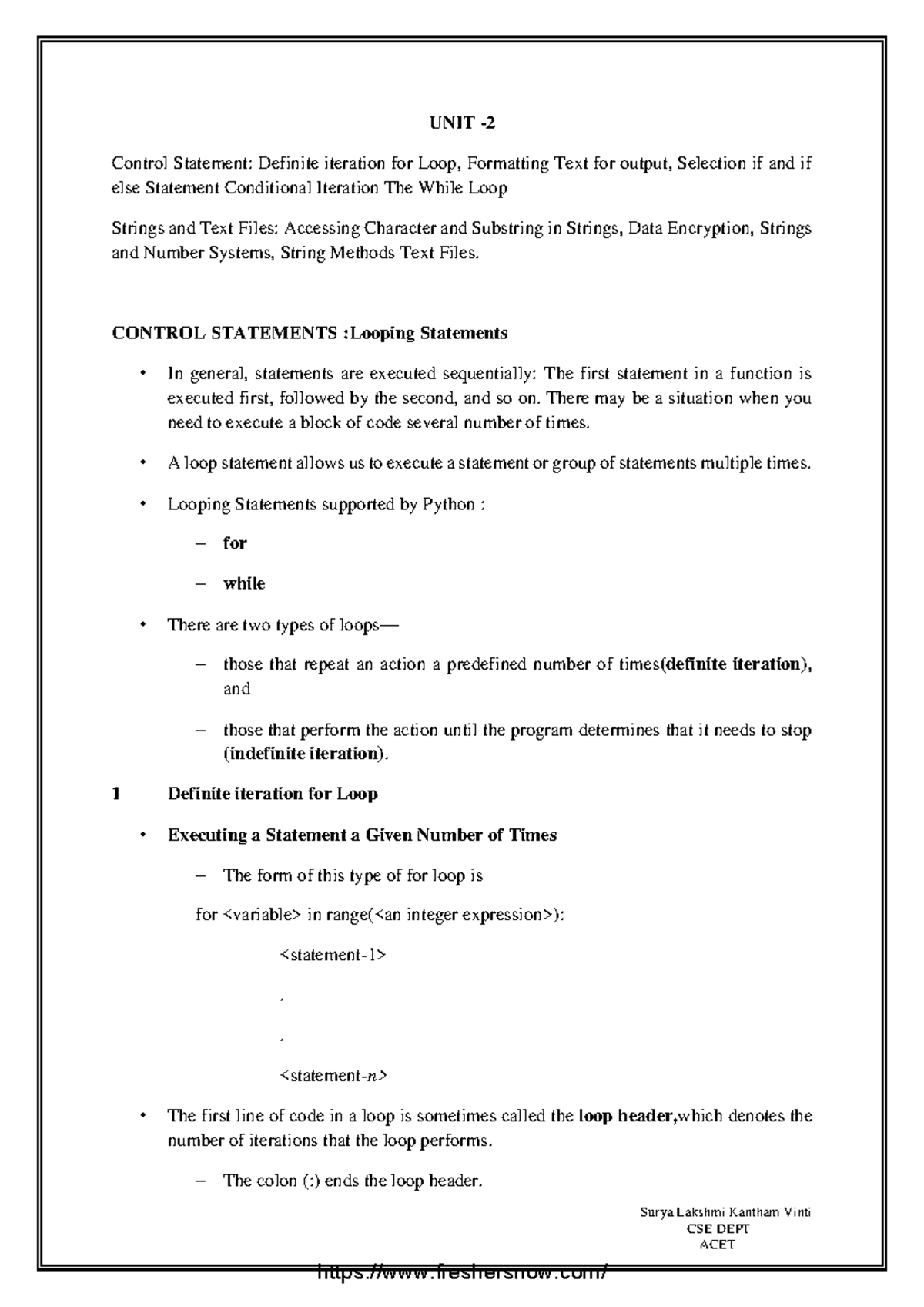 JNTUK R20 B.Tech CSE 1-2 Python Programming Unit 2 Notes: Control ...