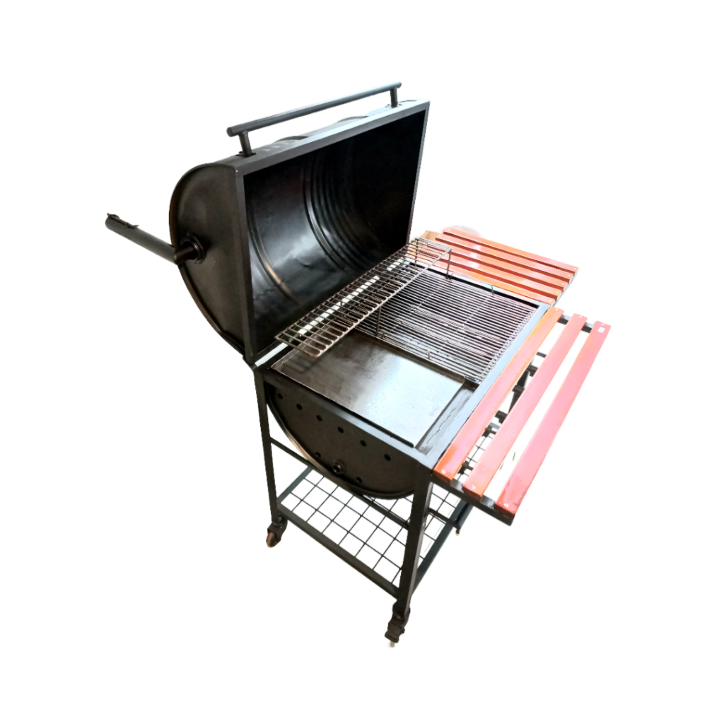 Barrel BBQ Cooker with Plate, Wood Rack, Mesh, and Wheels - Davindas