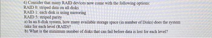 Solved 4) Consider that many RAID devices now come with the | Chegg.com