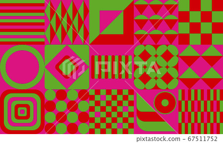 Extremely strong color contrast. Green, red, pink geometric pattern ...