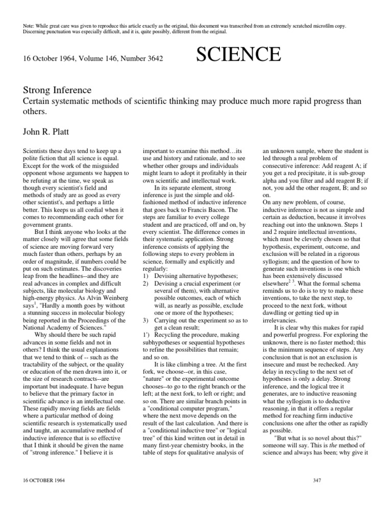 Strong Inference John R. Platt Science, New Series, Vol. 146, No ...