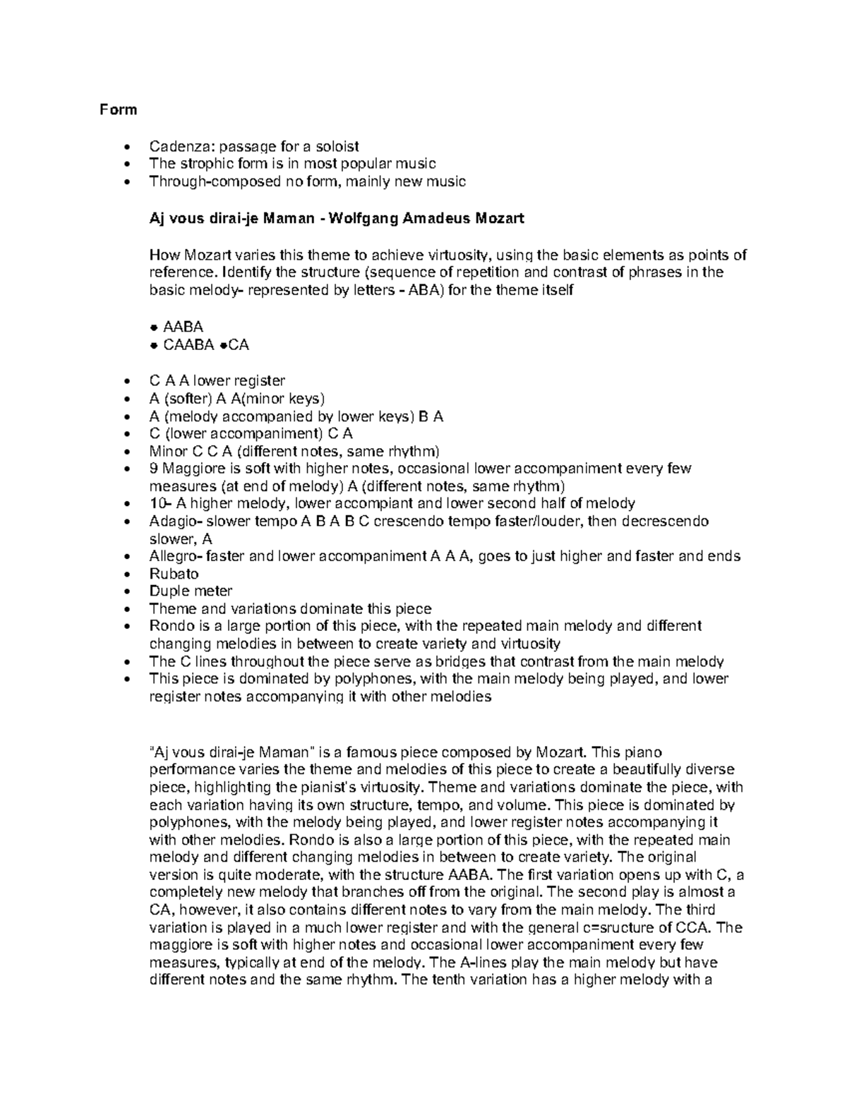 MUS 101 notes 3 - Form • Cadenza: passage for a soloist • The strophic ...
