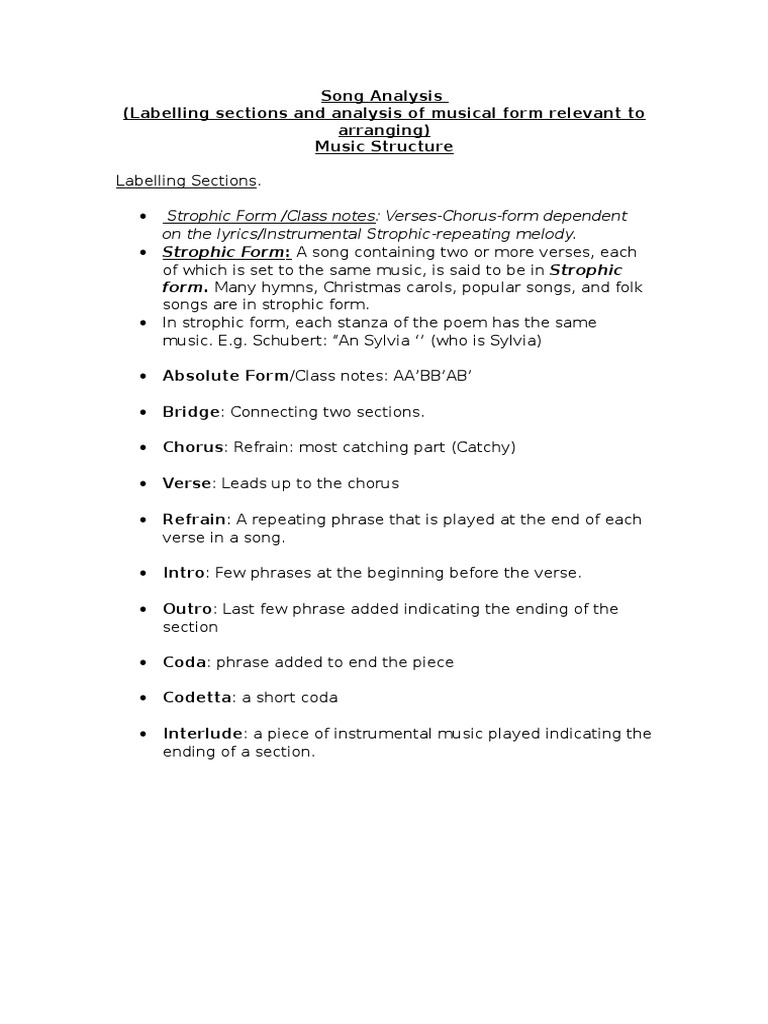 Strophic Form /class Notes: Verses-Chorus-form Dependent On The Lyrics ...