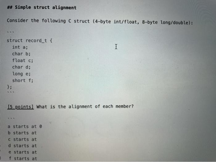 Solved ## Simple struct alignment Consider the following C | Chegg.com
