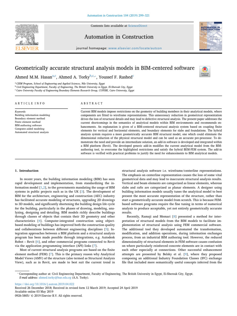Geometrically Accurate Structural Analysis Models in BIM-centered ...