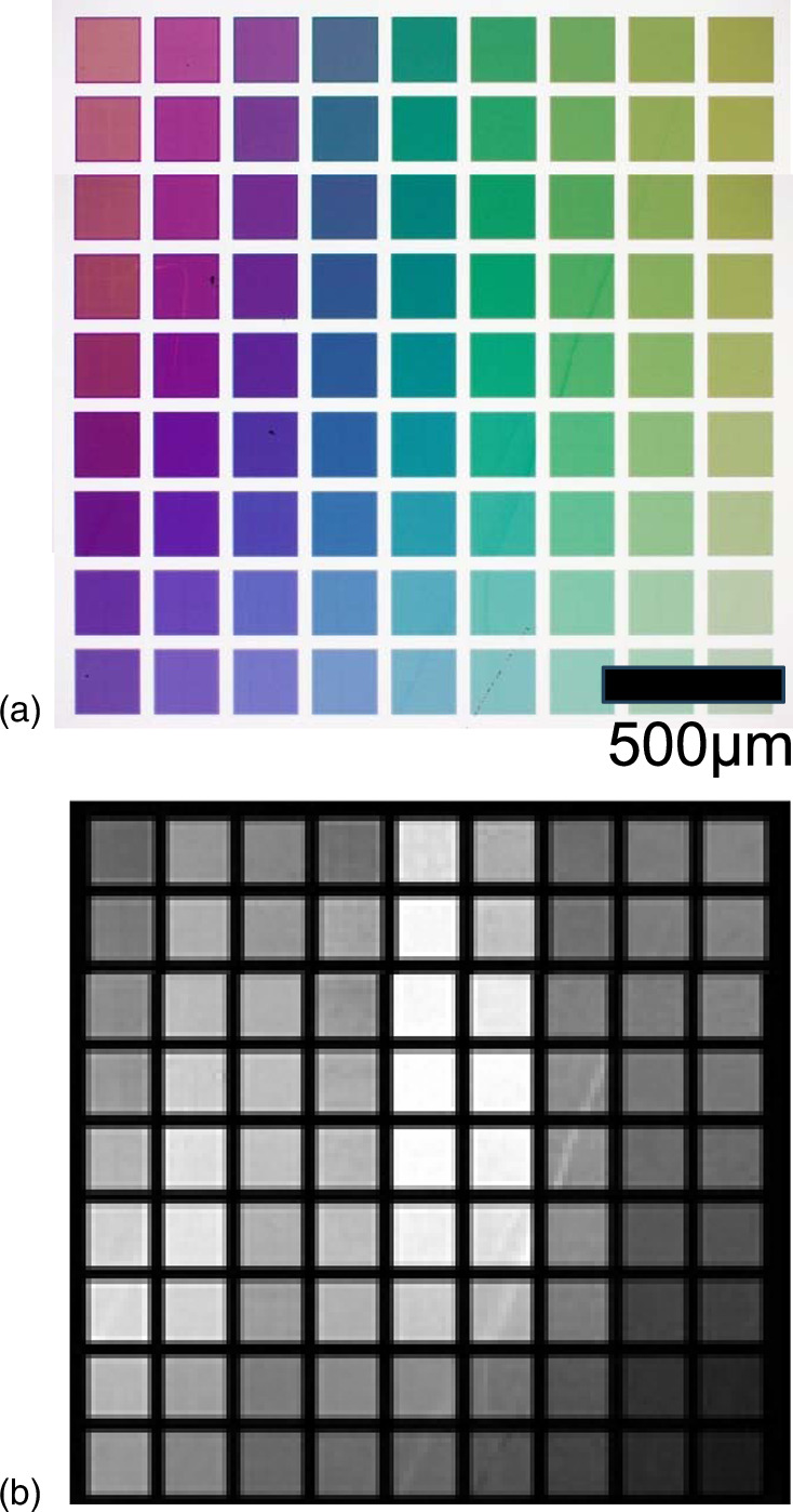 (a) Schematic of the structural color, (b) Simulated color data of the ...
