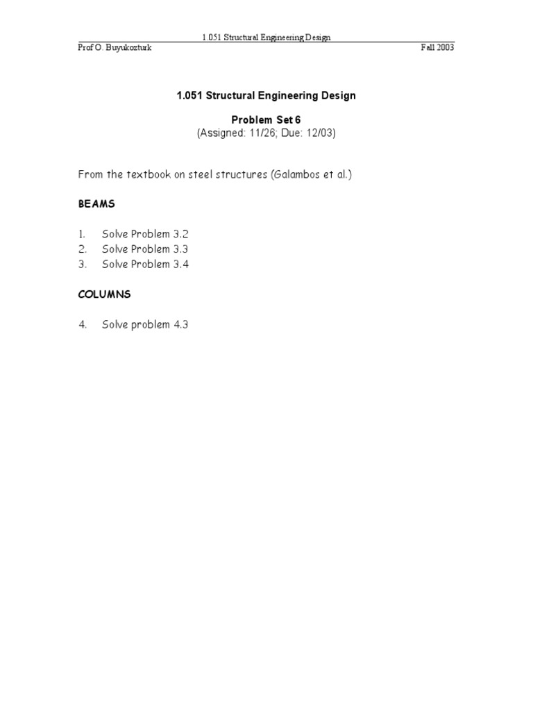 1.051 Structural Engineering Design Problem Set 3 (Assigned: 10/15; Due ...
