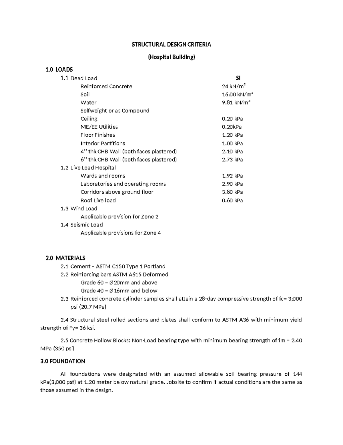 Structural Design Criteria for Hospital Building (ENG 101) - Studocu