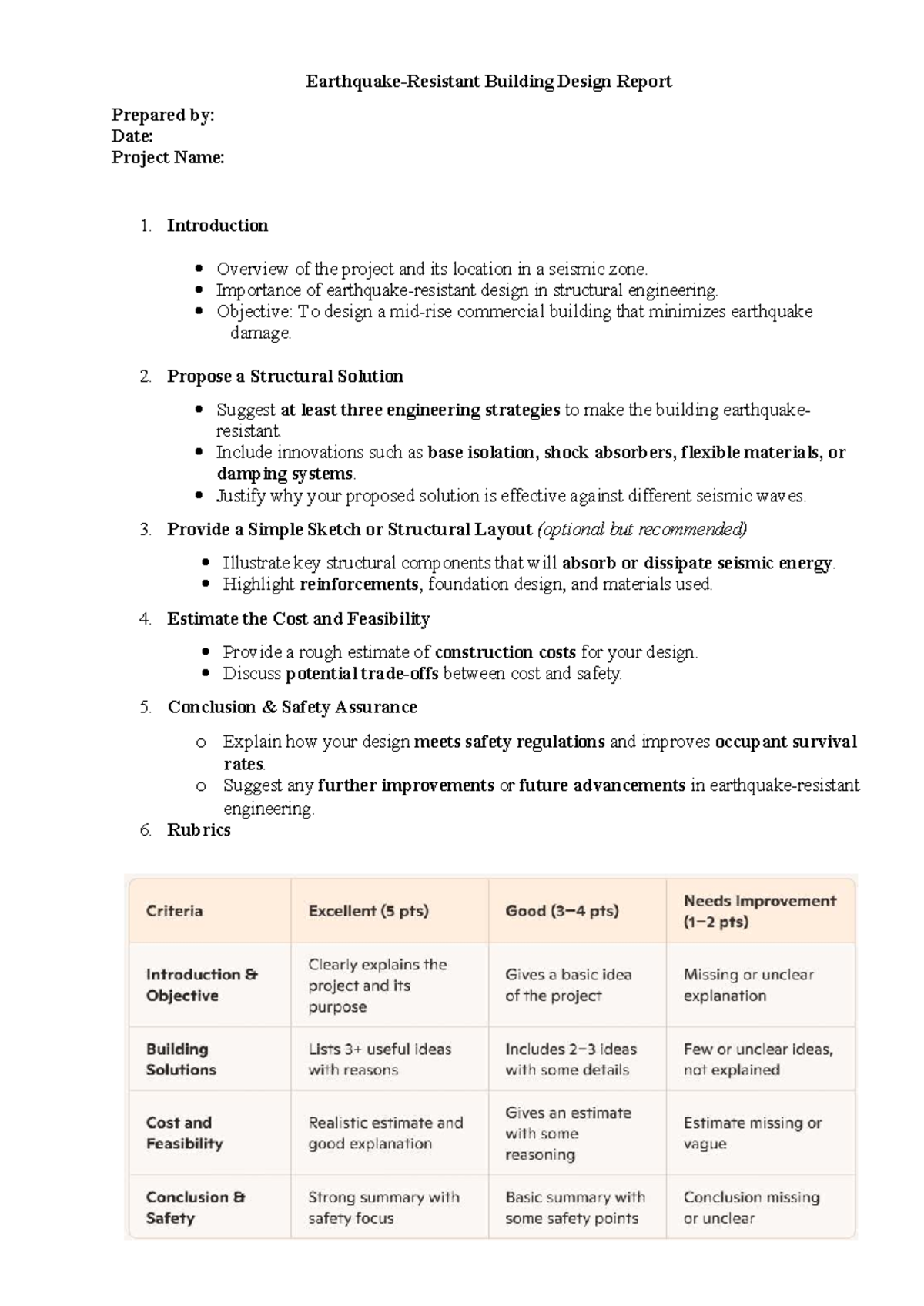 Structural Design Report for Earthquake Resistance: Project Overview ...