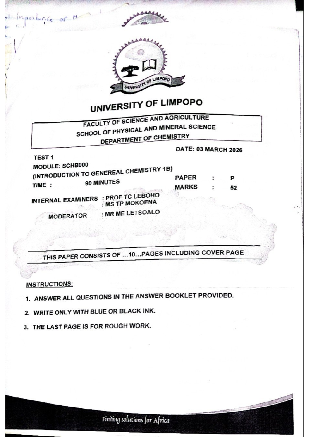 SCHB000 Test 1 2026 - Official Chemistry Exam Paper - Studocu