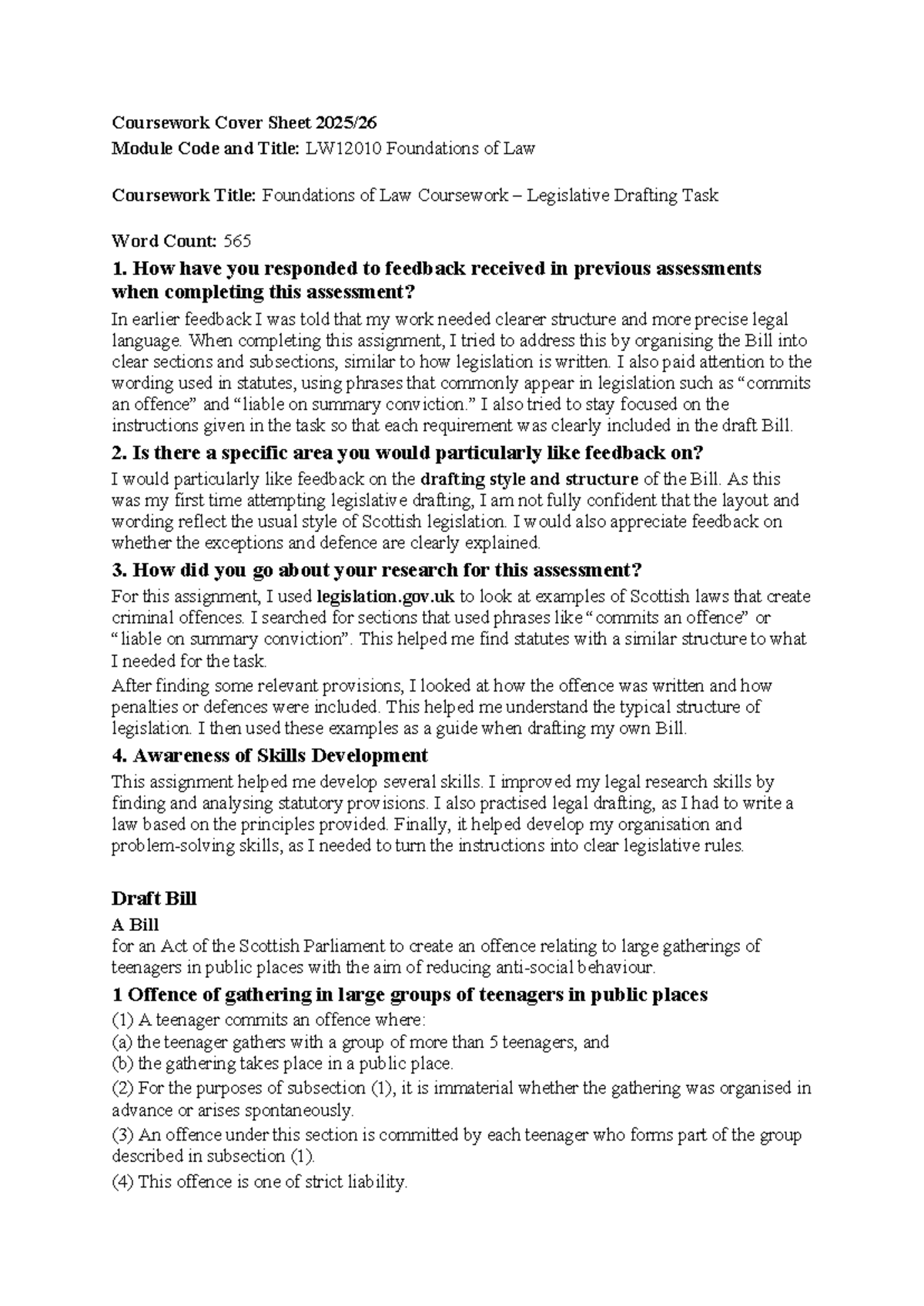 LW12010 Foundations of Law: Legislative Drafting Coursework Insights ...