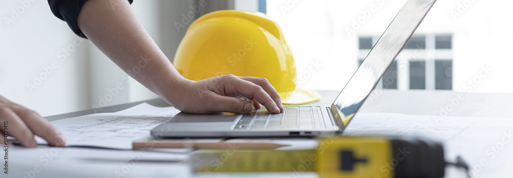 Architect or engineer using computer to work on desk, Cost calculation ...