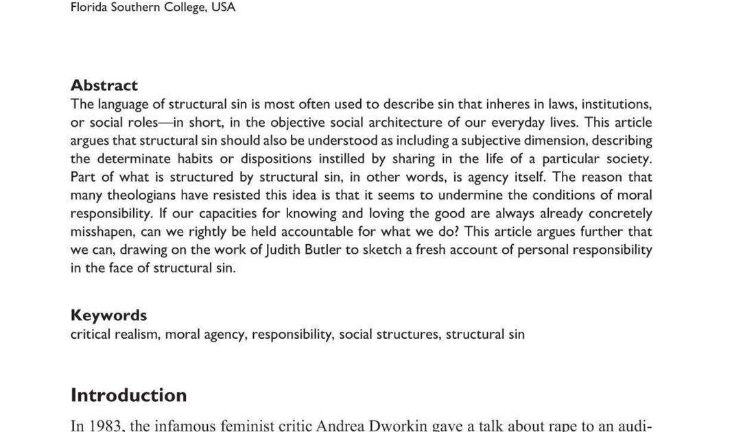Structural sin and private despair: looking again at ‘the sin of the ...