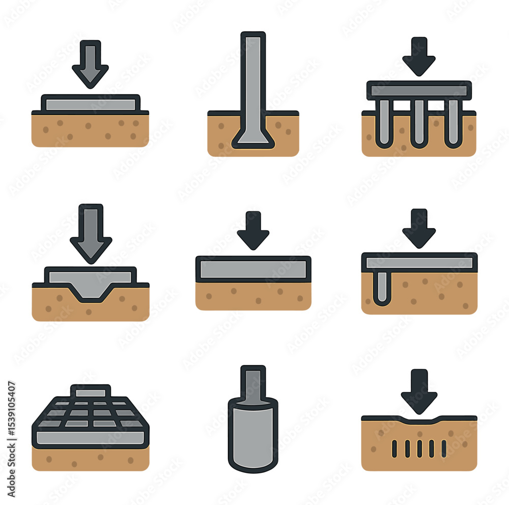 Collection of icons representing structural systems with images of grid ...