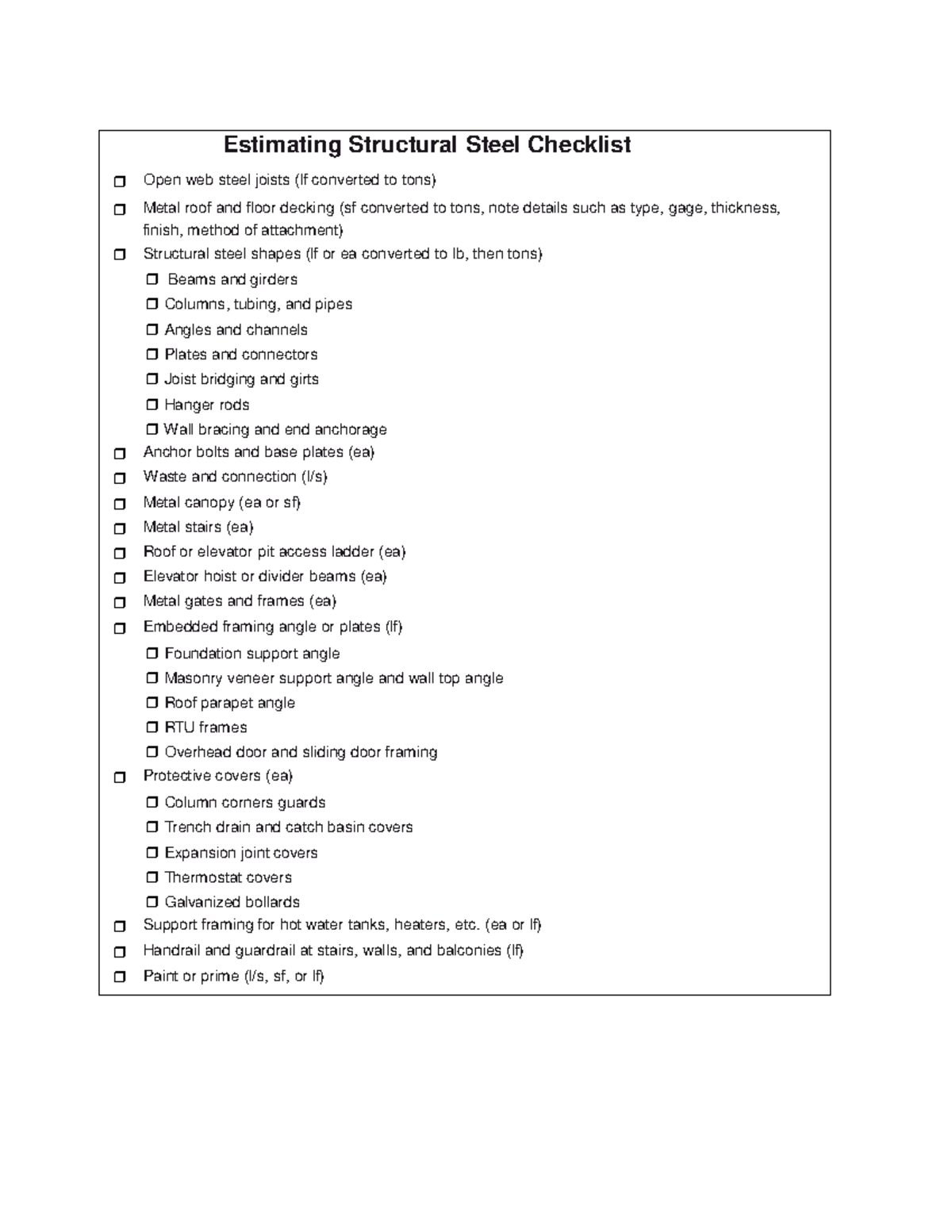 Estimating Structural Steel Checklist for Construction Projects - Studocu