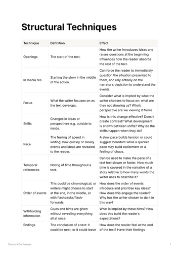 Extensive Structural Techniques Chart: GCSE & A-Level English ...