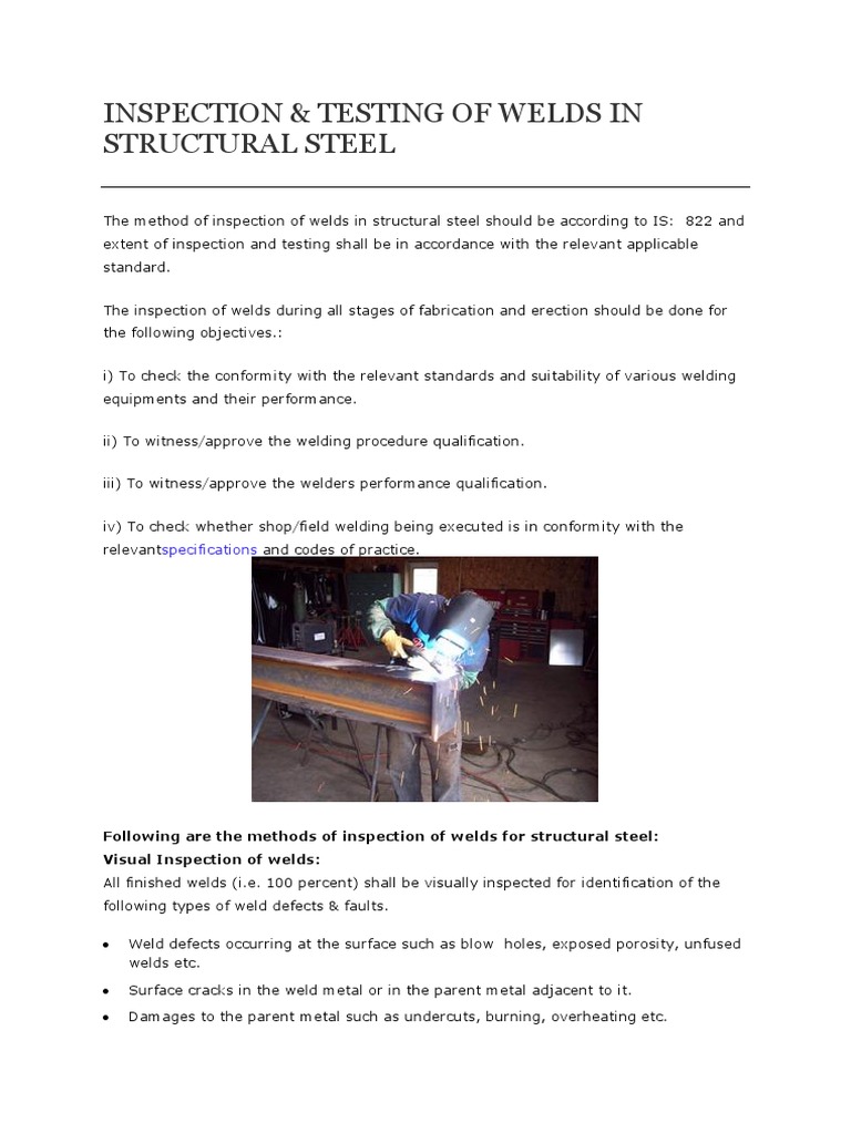 INSPECTION & TESTING OF WELDS IN STRUCTURAL STEEL – theconstructor.org