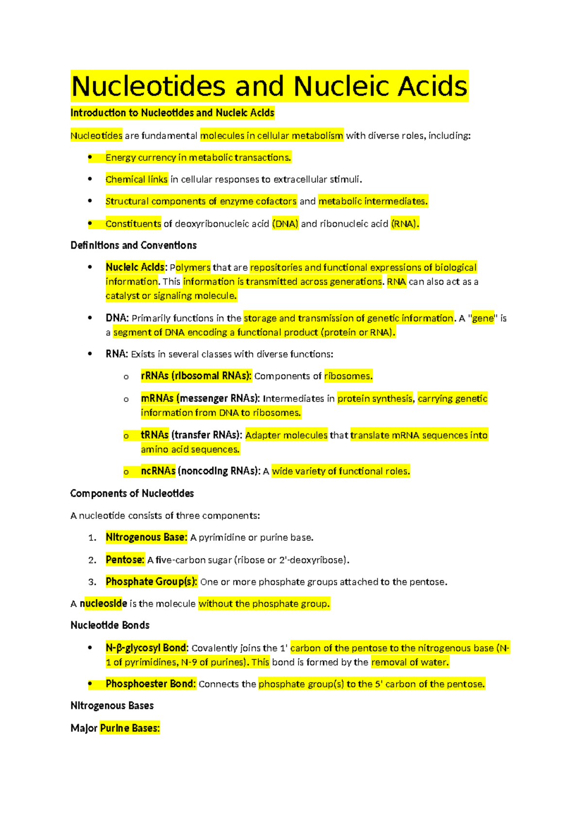 BCM 356 Final Exam Notes: Nucleic Acids and Nucleotides Overview - Studocu
