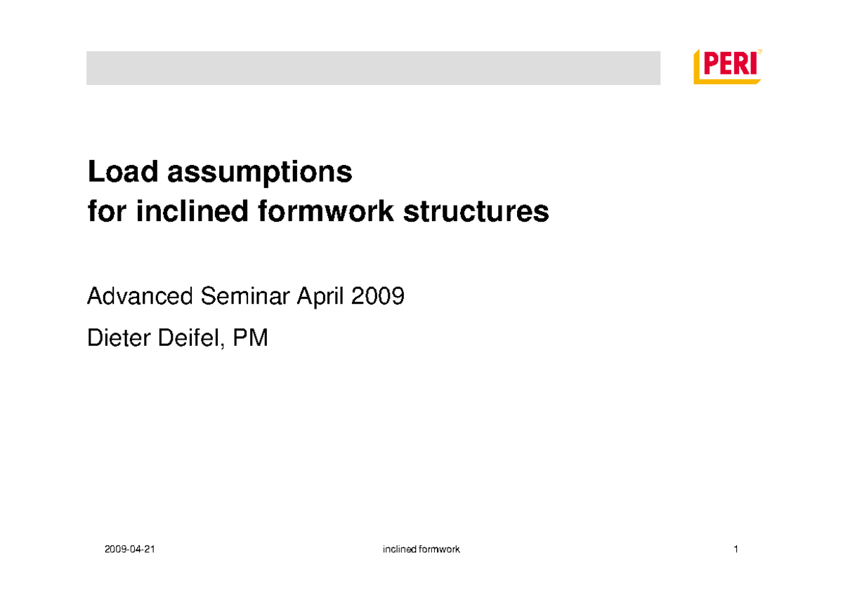 Load Assumptions for Inclined Formwork Structures - Advanced Seminar ...