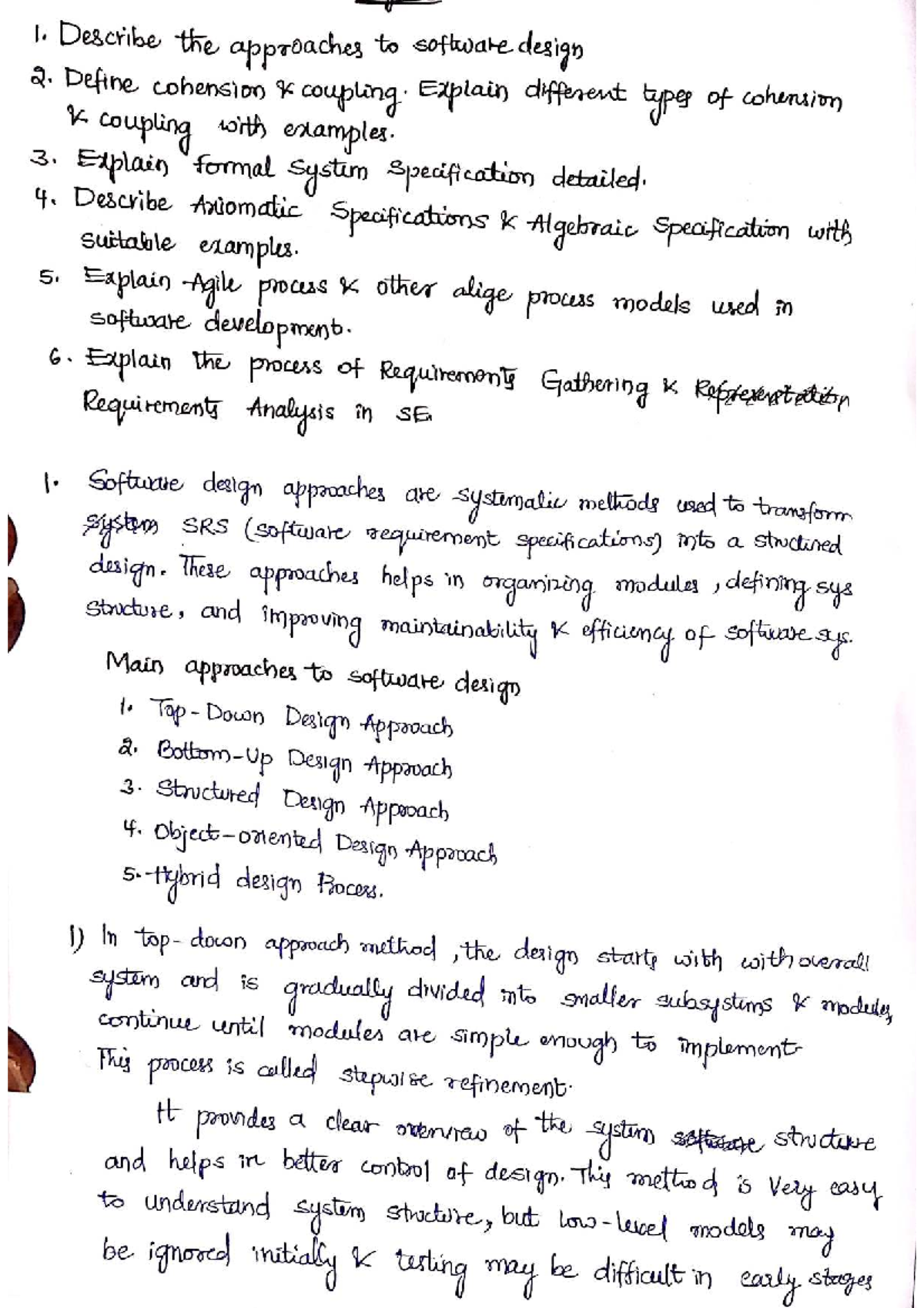 SE 1 & 2 - Software Design Approaches and Cohesion Analysis - Studocu