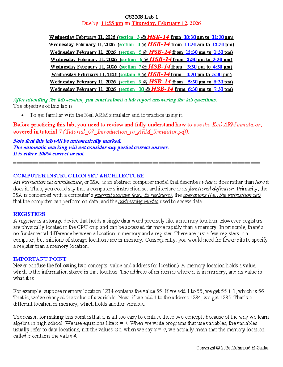 CS2208 Lab 1: ARM Simulator Introduction - Studocu