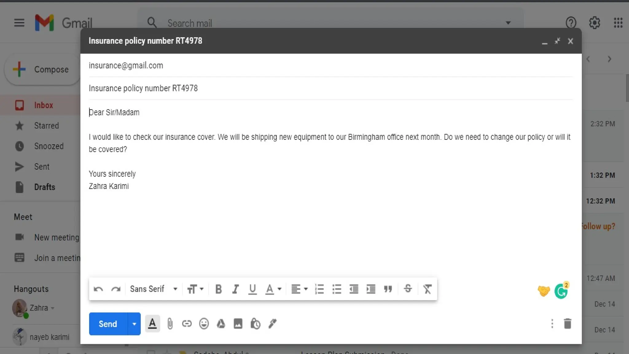Format for writing e-mail with example