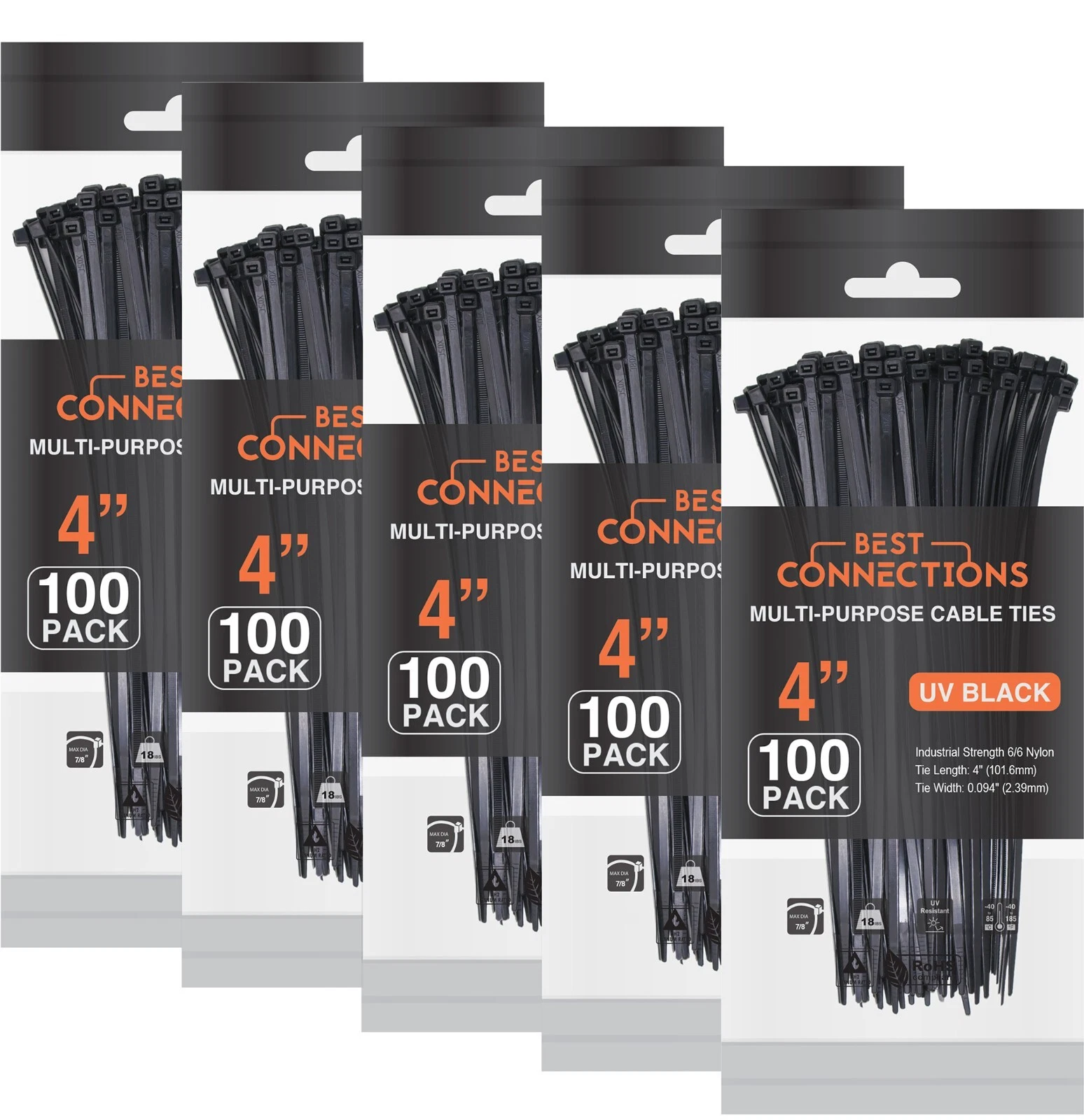 CIRCLE- 500 Pcs 4" Inch Black Nylon Cable Wire Zip Ties 18 Lbs ...