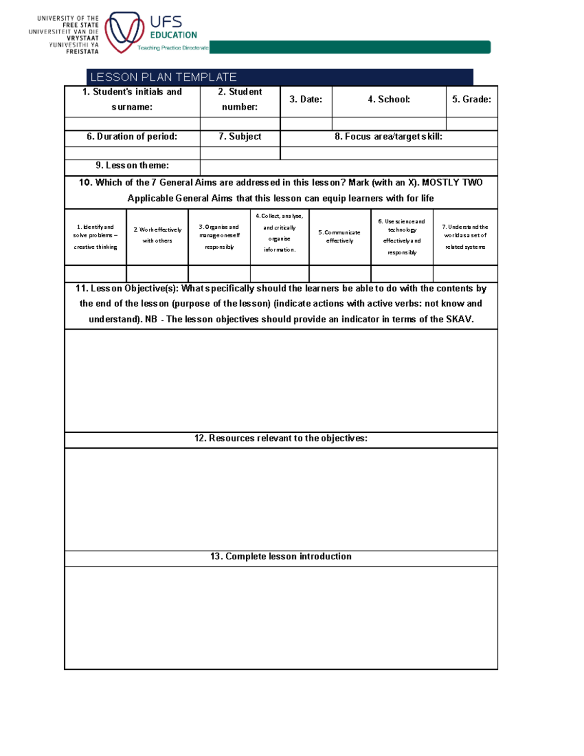 Lesson Plan Printable - udlvirtual.esad.edu.br