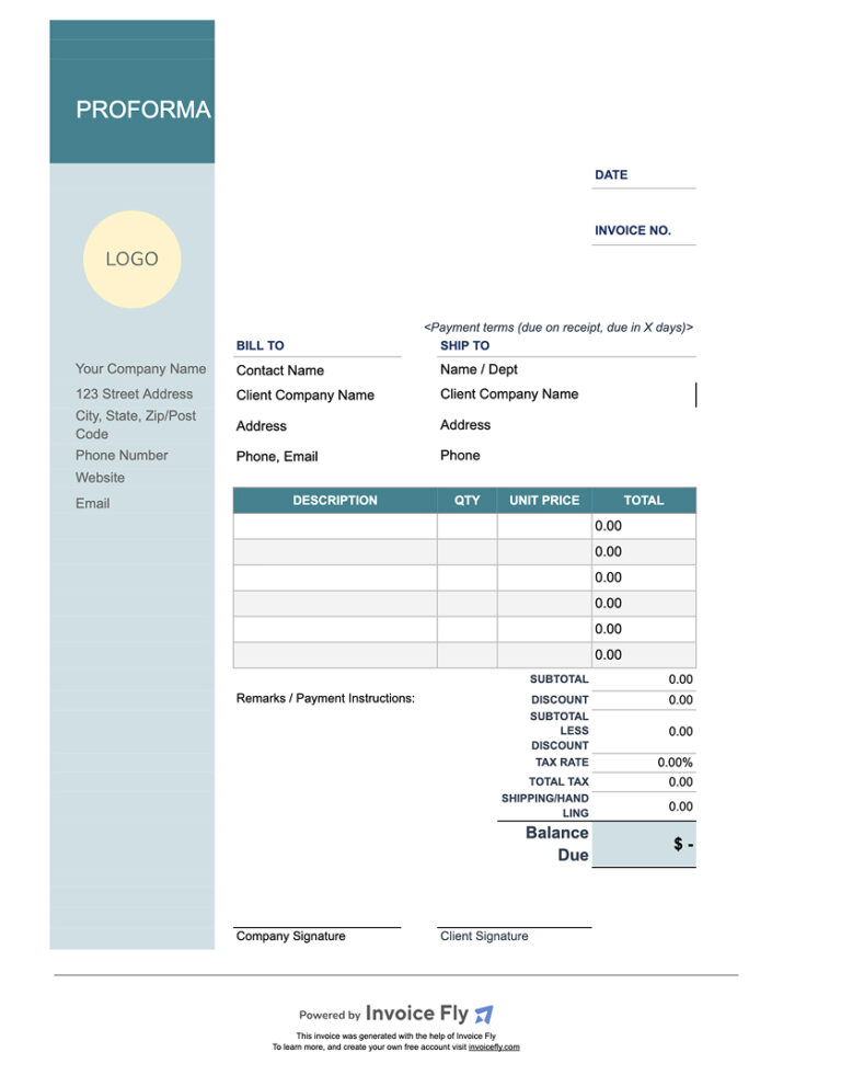 Free Printable Proforma Invoice Templates [Word, Excel, PDF]