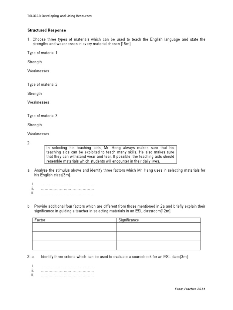 Structured Response: TSL3113 Developing and Using Resources | PDF ...