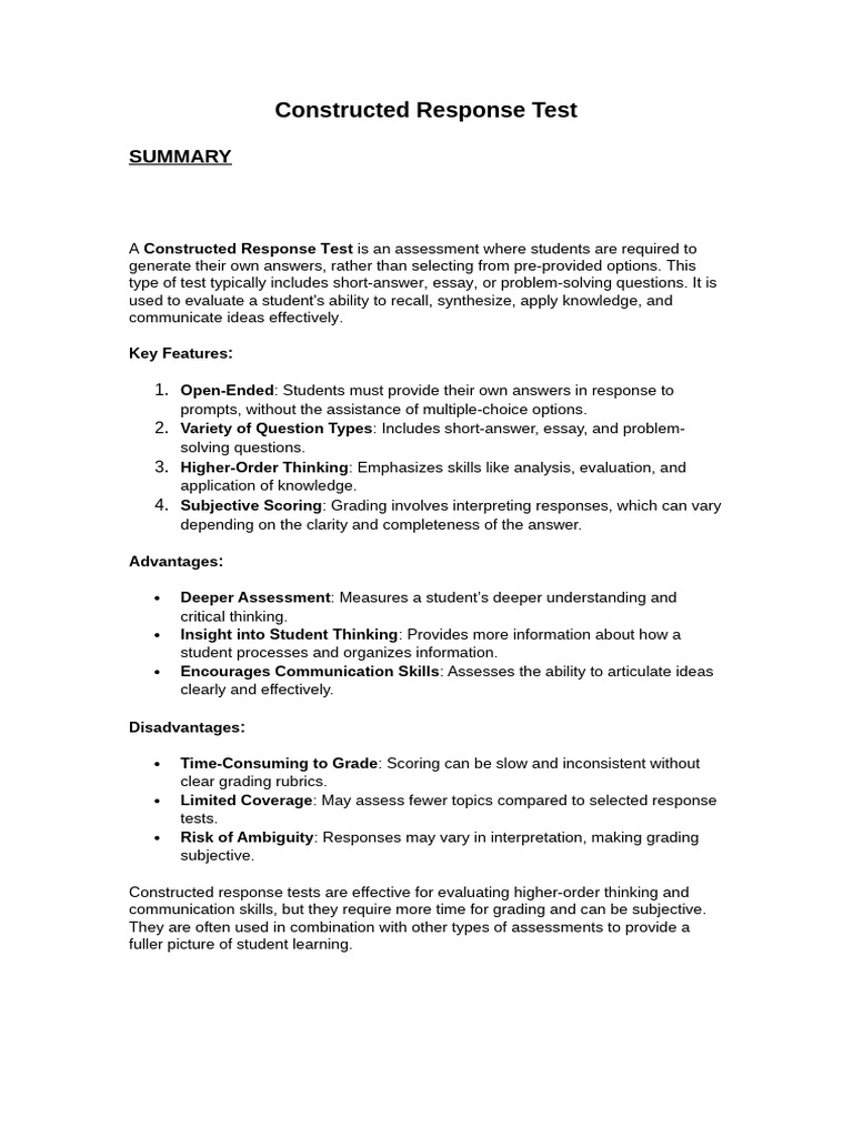 Types of Constructed Response Tests | PDF | Language Arts & Discipline