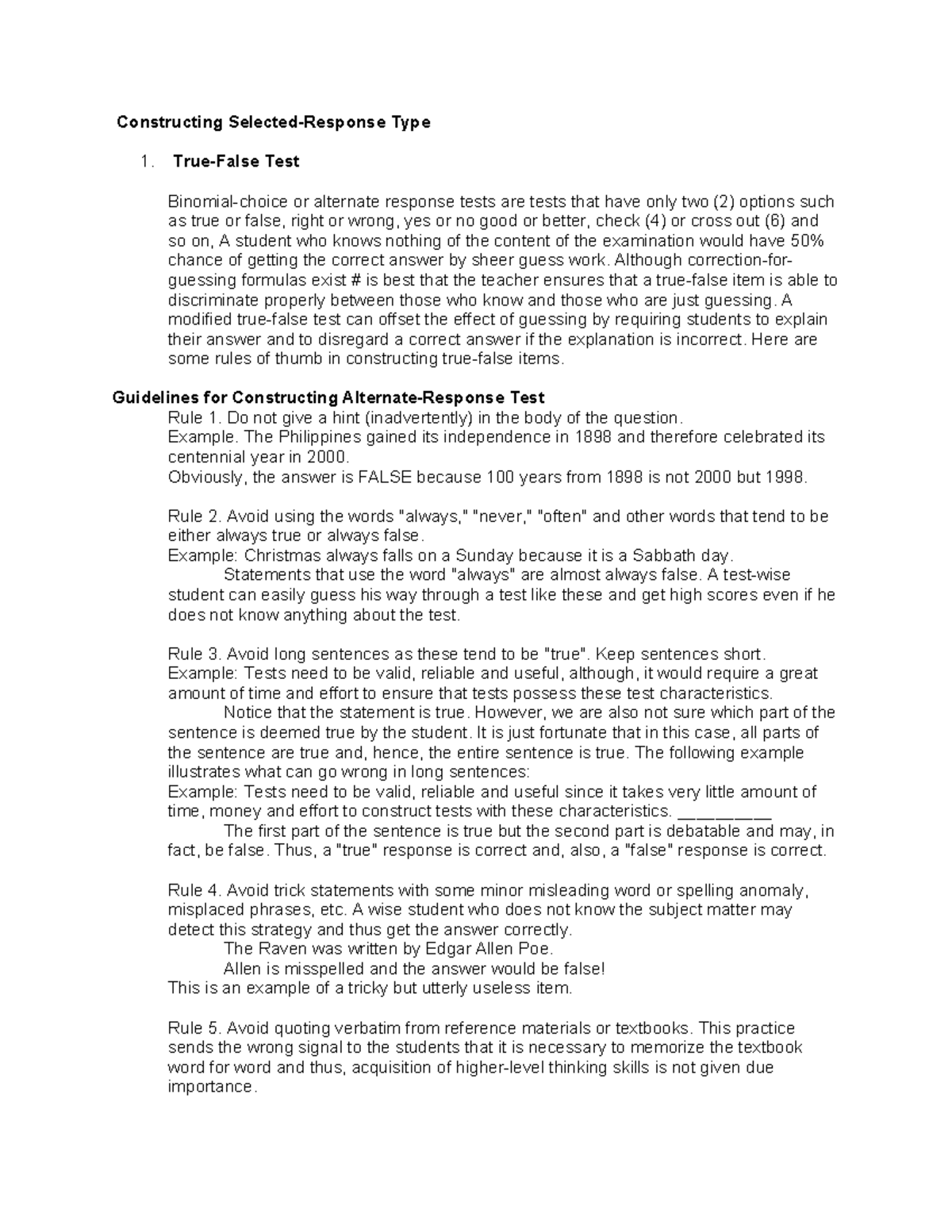Chapter 5: Guidelines for Constructing Selected-Response Tests - Studocu