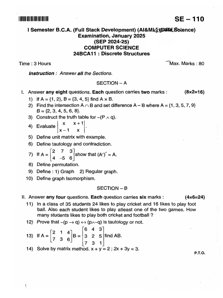 I Sem Discrete Structure - 2025 (Sep) | PDF