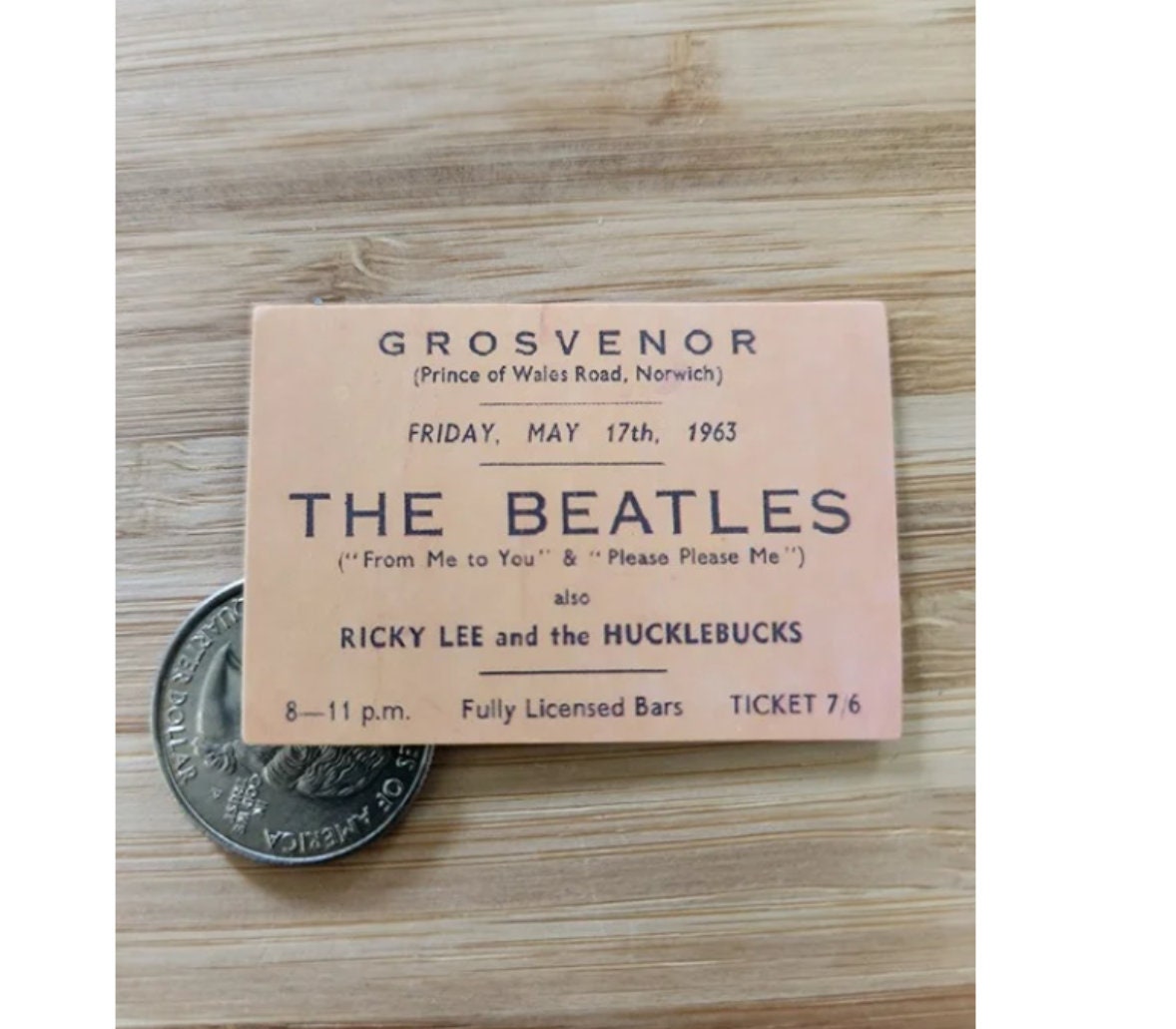 The BEATLES STICKER the Beatles Ticket Stub Sticker Decal Grosvenor ...