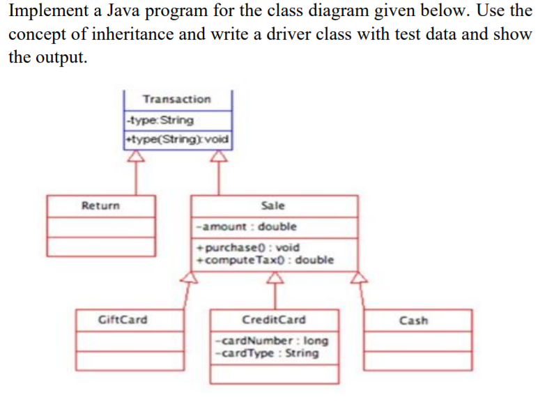 Solved 2. Write JAVA program as per class diagram and | Chegg.com