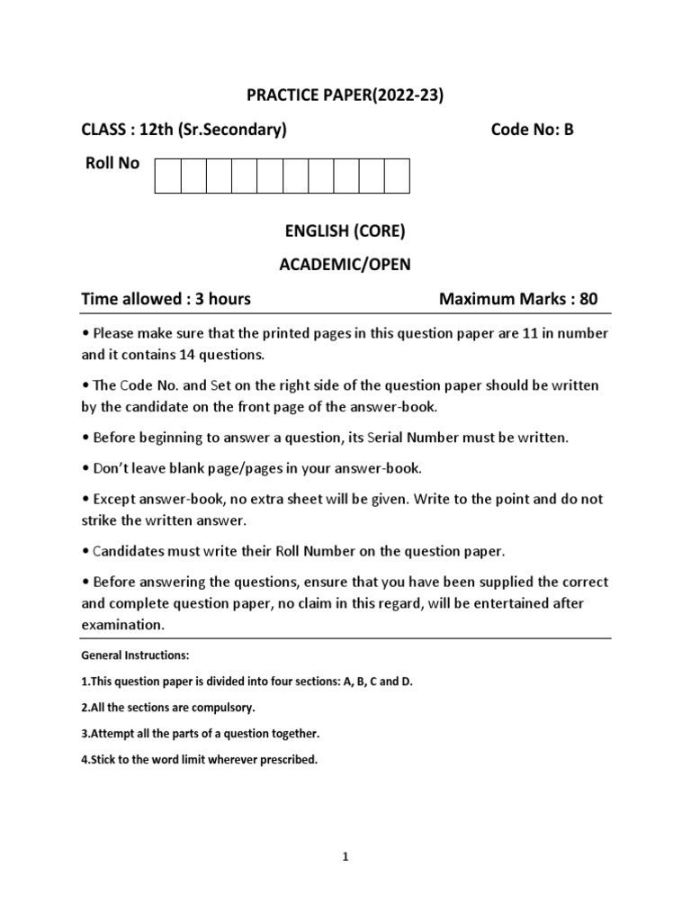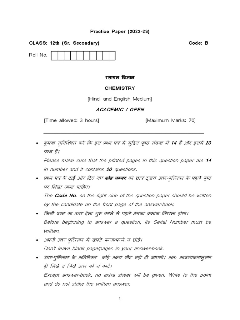 Practice Paper (2022-23) CLASS: 12th (Sr. Secondary) Code: B Roll No | PDF