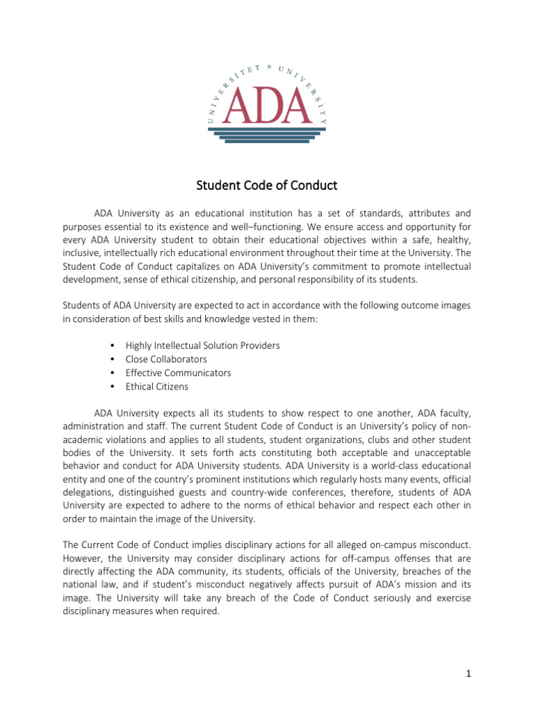Student Code of Conduct | PDF | University | Americans With ...